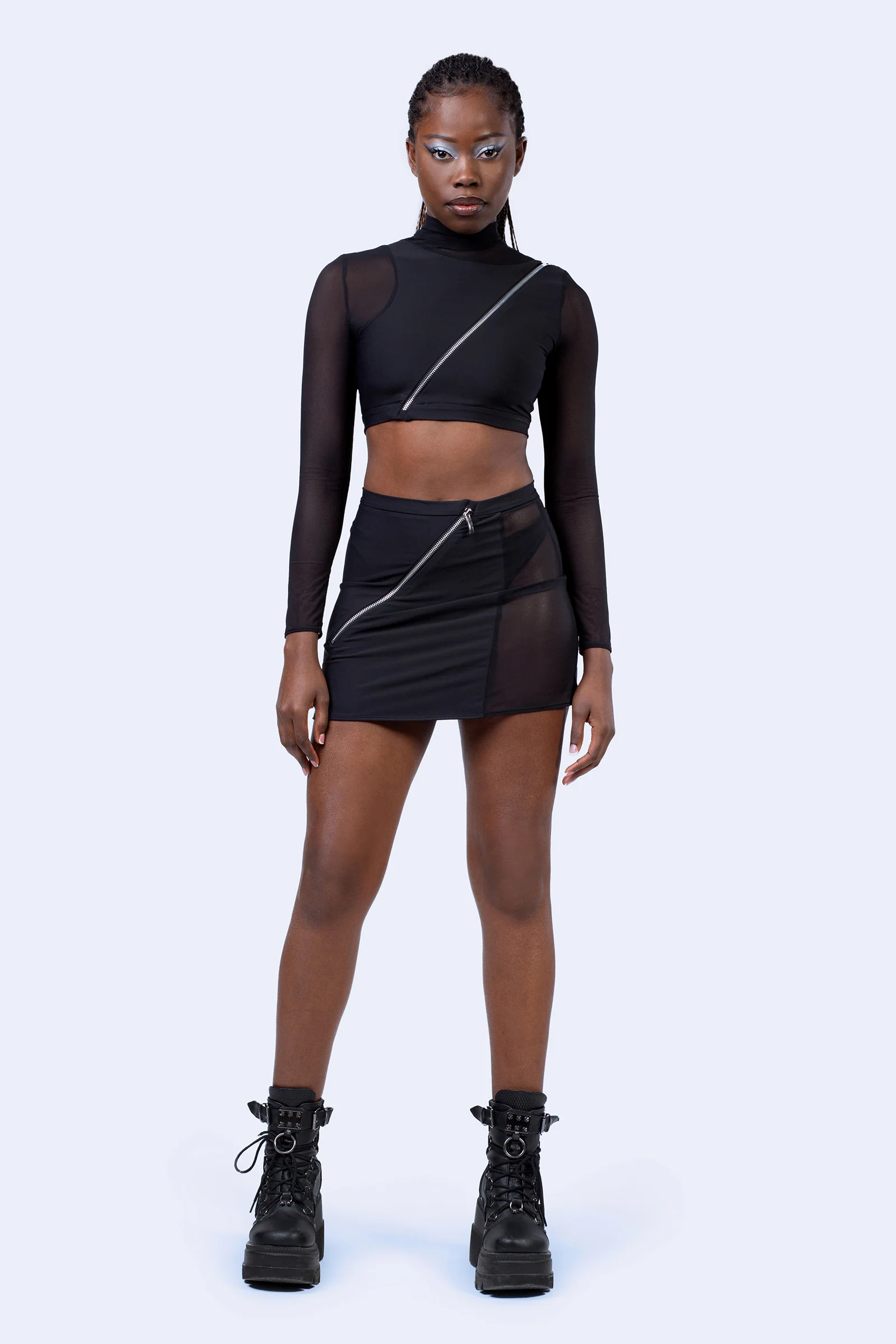Add a dash of sophistication to your going out get-up with this gorgeous paneled skirt. Carrying a lot of personality this skirt can be combined in a million ways, always delivering the same level of glamour. Combine with opaque colored tights for an accent or go bare legged for a sexy party fix. Pair with the matching paneled top for a complete outfit.